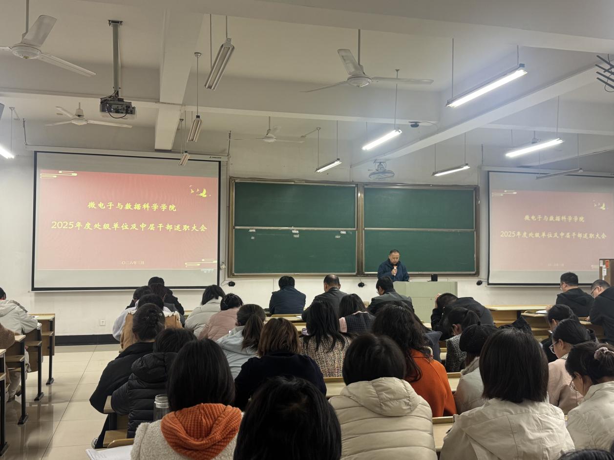 领导班子成员依次进行了2025年度处级单位及中层干部述职汇报,全面梳理过去一年在党建、教学、科研、师资建设和人才培养等方面的工作成效,客观分析存在的问题与不足,明确后续工作思路,接受全体教职工的监督与评议。